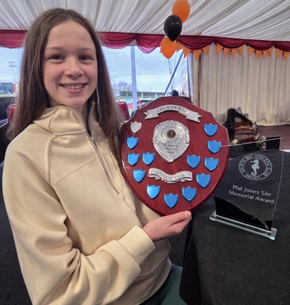 Llongyfarchiadau mawr i Sienna, sydd wedi cael ei hanrhydeddu â Gwobr Goffa Phil Jones yr Hynaf fawreddog yng Ngwobrau Cyflawniad mewn Athletau Bae Colwyn yn ddiweddar!