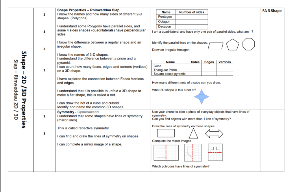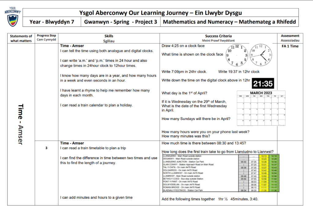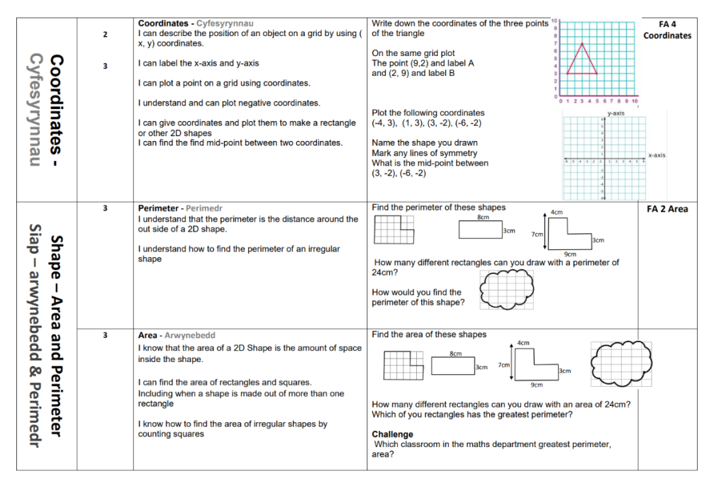Rydym yn egluro mathemateg trwy waith ymarferol a sefyllfaoedd y bydd y myfyrwyr yn eu deall. Mae defnyddio deunyddiau deniadol, wedi'u darlunio'n dda, ynghyd â gweithgareddau TGCh, yn caniatáu i'r myfyrwyr fynd yn ddychmygus i sefyllfaoedd sy'n ymgorffori syniadau mathemategol. Mae'r fathemateg yn gysylltiedig â phrofiad y myfyrwyr ac rydym yn annog pob myfyriwr i ddefnyddio a chymhwyso eu gallu mathemategol.