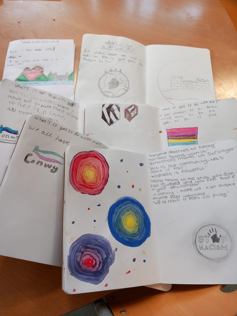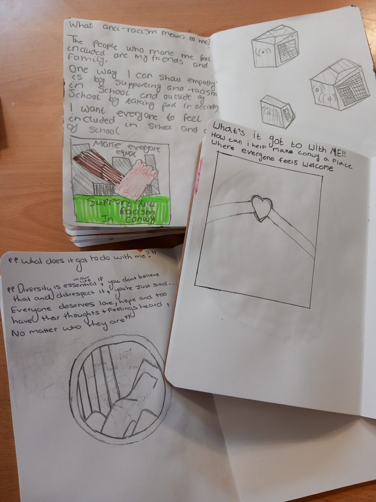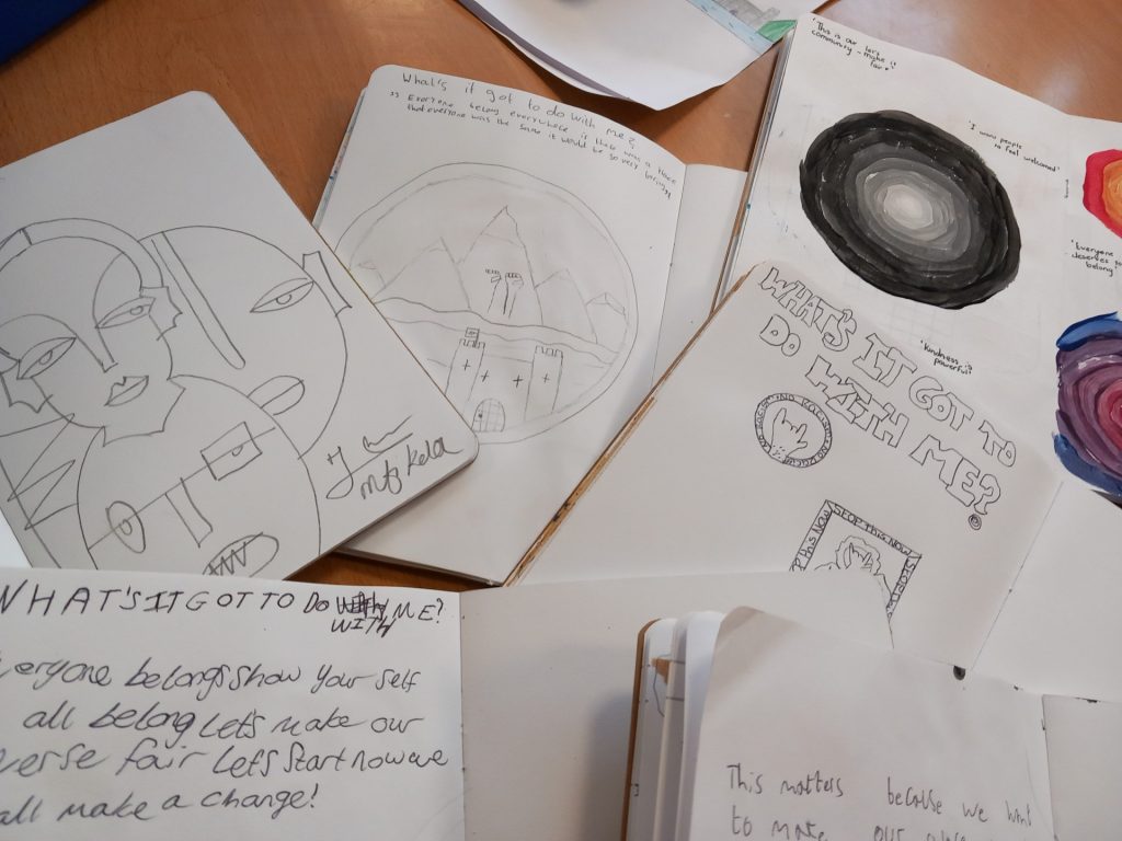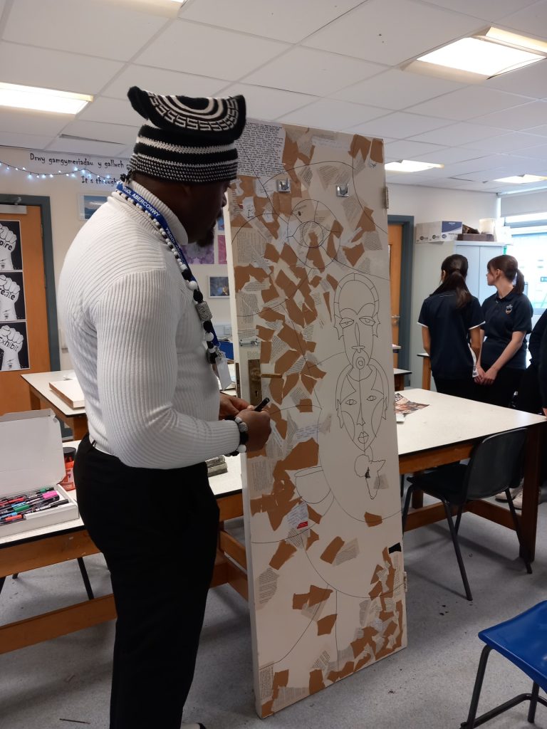 These pieces were inspired by the artist Mfikela Jean Samuel and the wider inclusion project we are undertaking as a school (“What’s it got to do with me?“). We are pushing back against racism by building a community for everyone, where we listen to everyone’s voice.