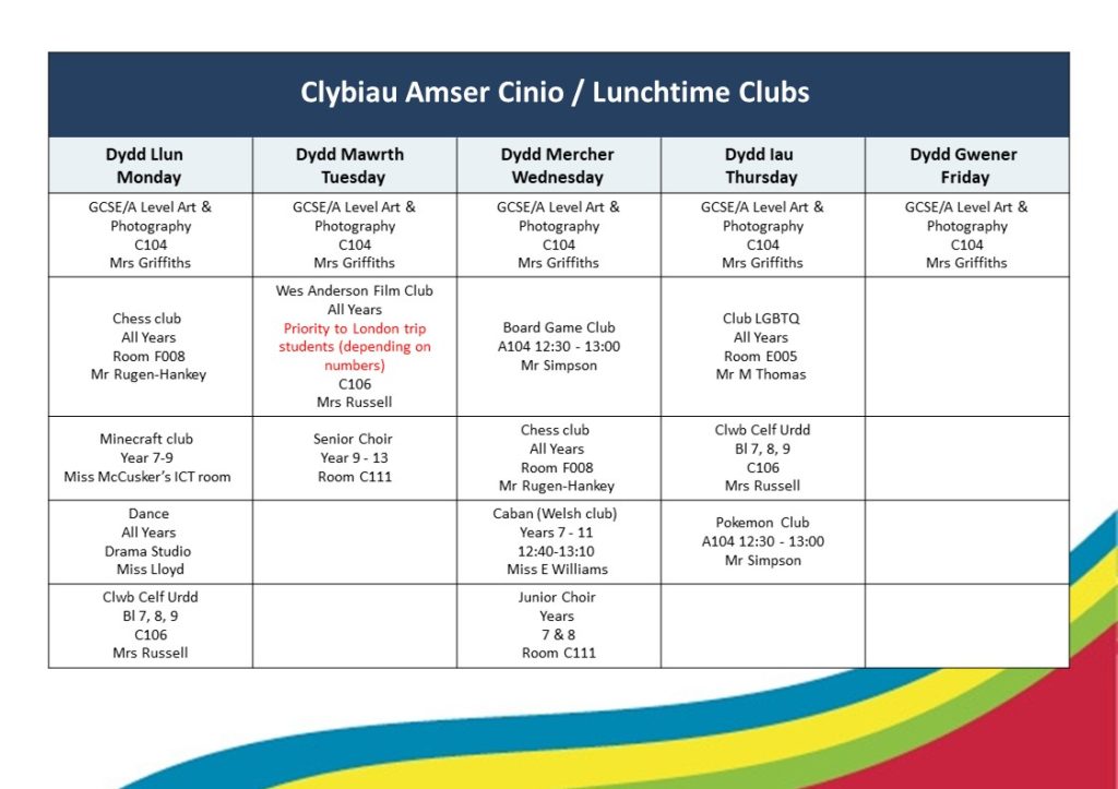 A wide variety of activities are provided through the medium of Welsh, e.g. crafts, quizzes, interactive games and board games, singing, performing, reading and of course conversing in Welsh. Joining the club give students an opportunity to improve and gain confidence in their Welsh skills as well as giving them an opportunity to socialise through the medium of Welsh and make new friends!
