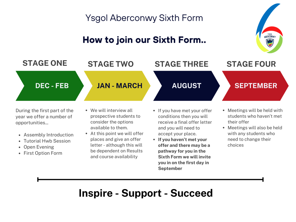 | The new prospectuses will be added to the website | Sixth Form Open Evening for parents and students | Linc Course Information Event at Venue Cymru | Individual destinations interview with all year 11 students | Deadline for choices | Final offer made and student acceptance required | Interviews for candidates who need changes or further support |